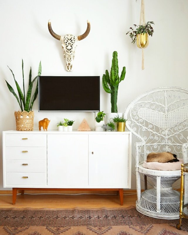Wohnzimmer, Boho, Kakteen, Sukkulente, Urban Jungle, Sideboard, TV Möbel, Kommode