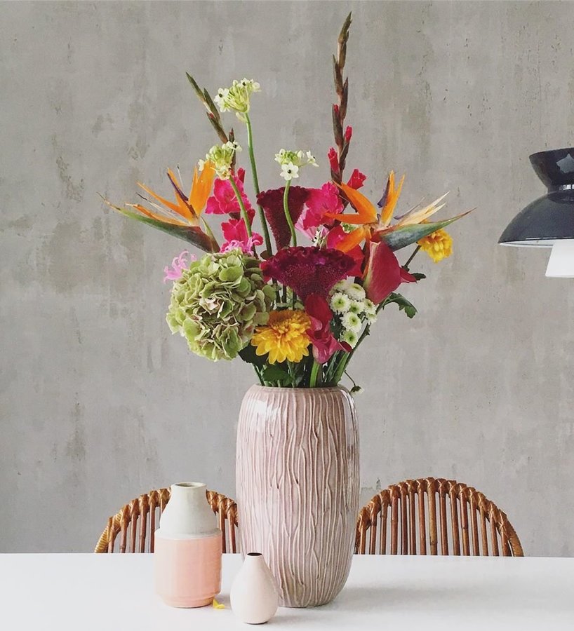 Blumenstrauß, Vase, Tischdeko, Herbstdeko, Sichtbeton