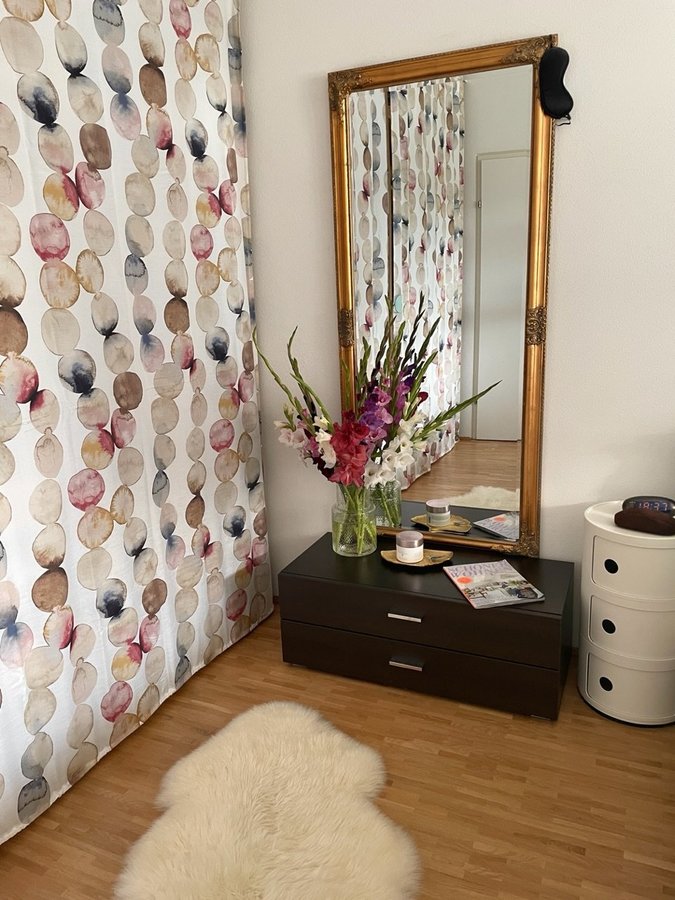 Schlafzimmer, Vorhang, IKEA Säckmal, Componibili, Spiegel