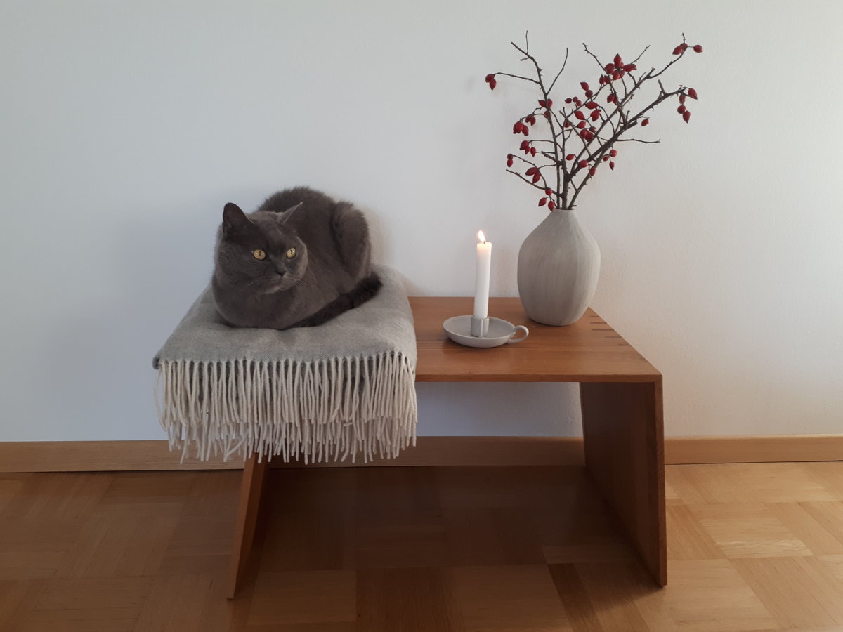 Wohnzimmer, Tisch, Tischdeko, Vase, Hagebuttenzweig