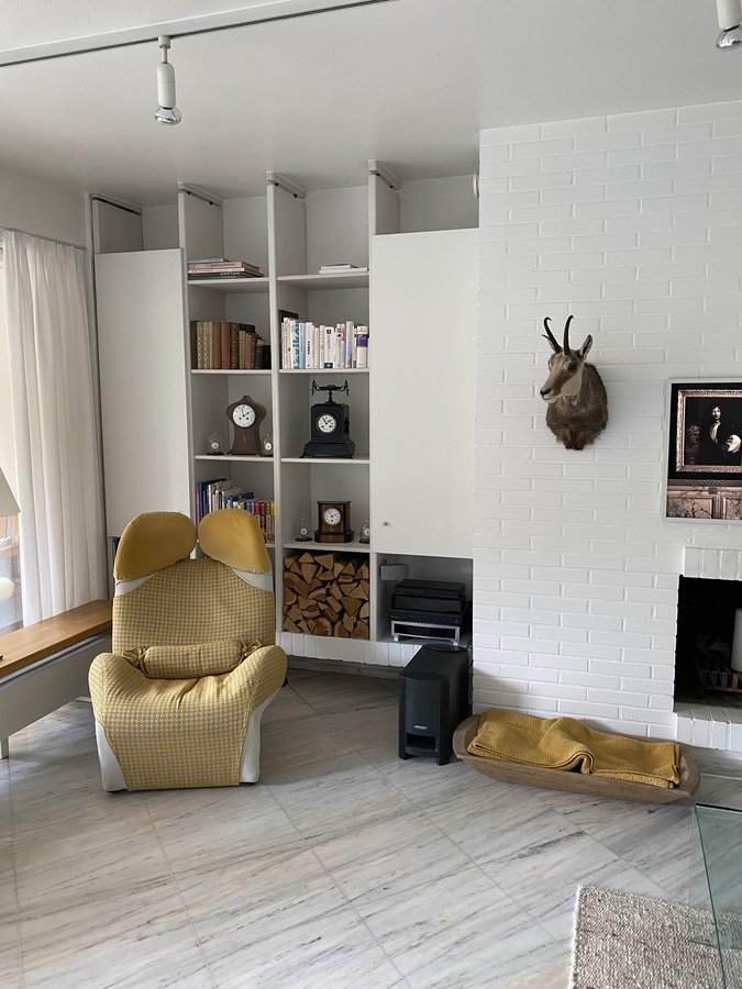 Unser Regal lieben wir sehr. Es wurde vor vielen, vielen Jahren von einem Tischler nach unserem Entwurf eingebaut. Die vielen Fächer waren uns nach einiger Zeit zu unruhig und so baute mein Mann Türen an. So wirkt es viel ruhiger und die nicht ganz so attraktiven Bücher sind aus dem Blickfeld verschwunden.