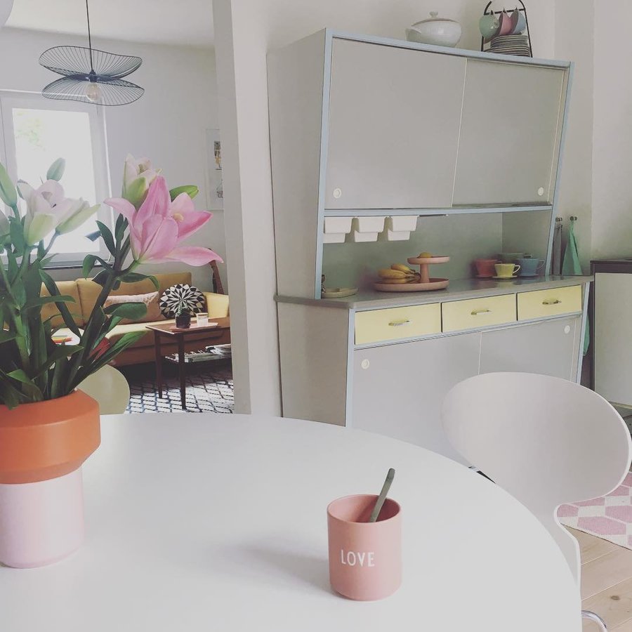 Küche, 50er, Lilien, Buffetschrank, Pastell