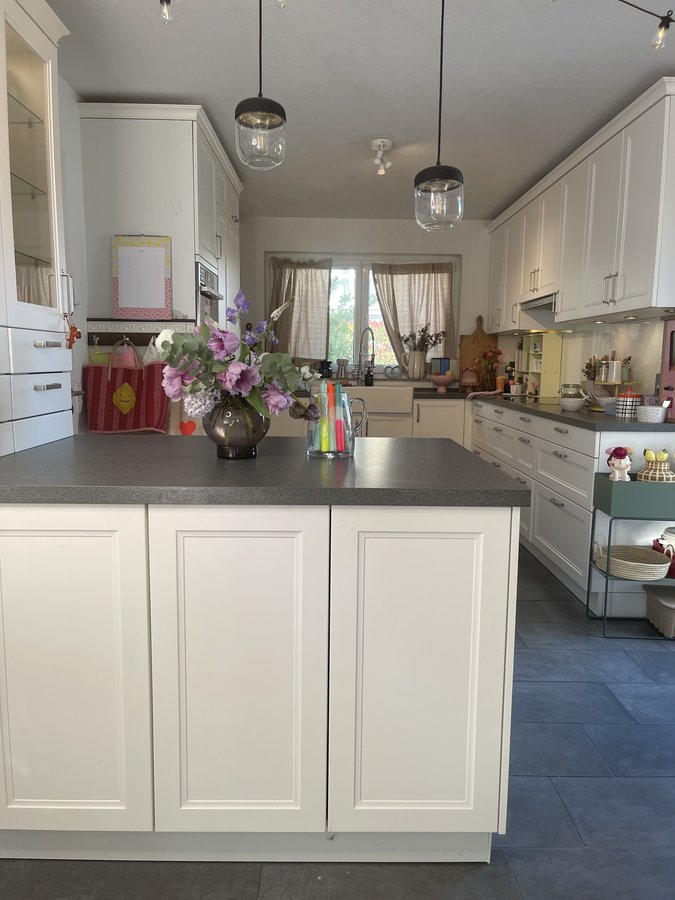 Unsere weiße Küche ist die perfekte Leinwand für viele bunte Farbakzente. Und bei mir gibts jetzt erst einmal einen Kaffee. Wünsche euch einen schönen Start in die neue Woche 🫶🎉😄!