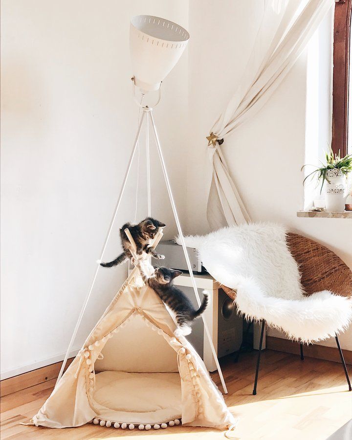 Katzen, Wohnzimmer, Stuhl, Rattan
