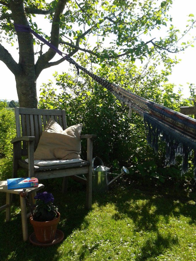 Garten im Mai, Apfelbaum, Relaxen, Lesen