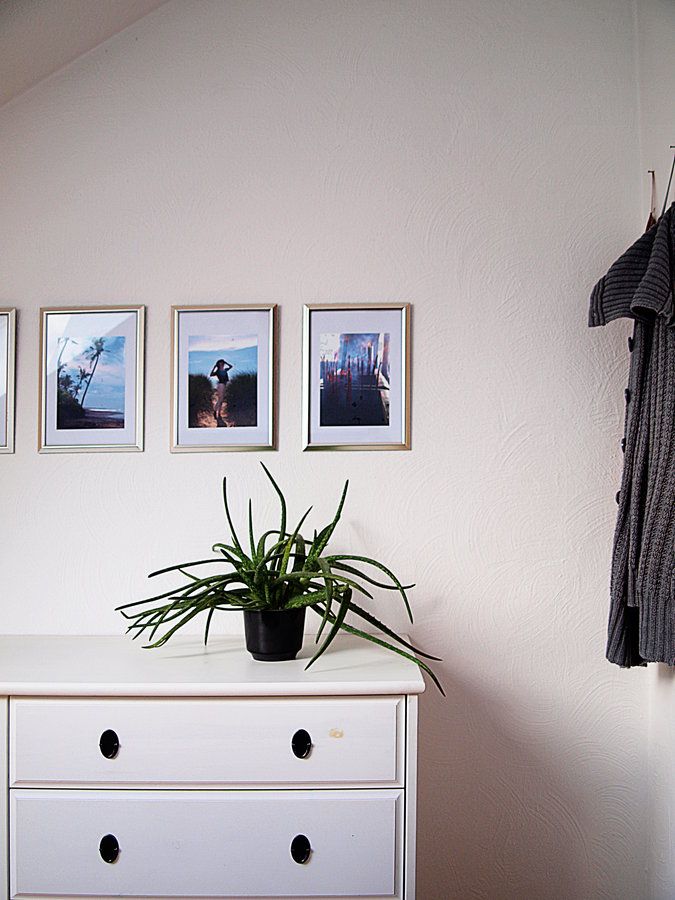 Aloe vera, Zimmerpflanze, Keramik, Bilderrahmen, Schlafzimmer, Kommode, Weiß, Gemütlich, Strickjacke, Übertopf