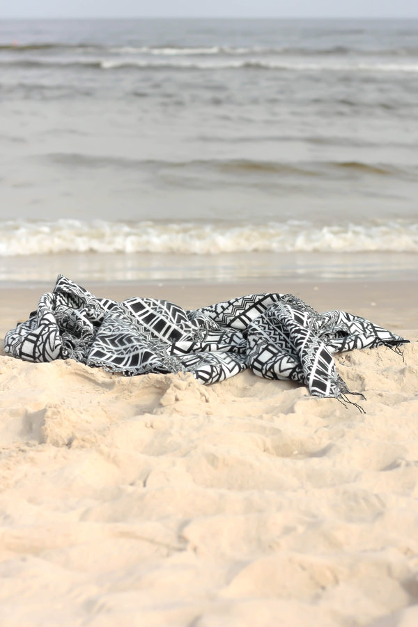 Meer, Meerblau, Ostsee, Urlaub 2016, Urlaub, Schwarz weiß, Poncho, Strand, ferien, Baltic Sea, Swinemünde, Polen