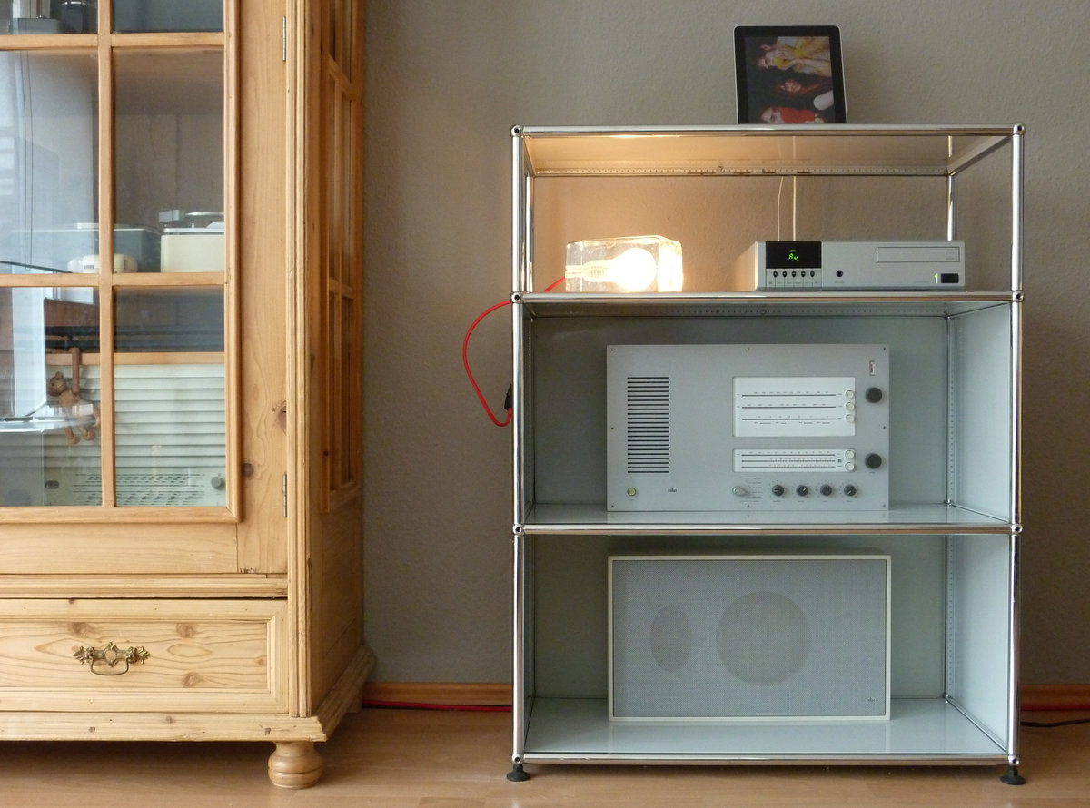 Das USM-Regal ist sehr schön, die Leuchte und die Musikanlage passen perfekt. lg
