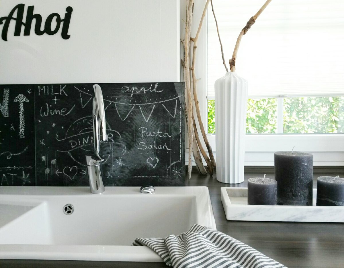 Küche, Wohnen, Kerzen, Schwarz, Weiß, Tafelfarbe, Spülbecken
