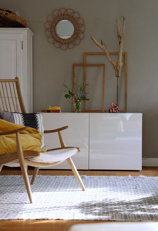 Den Schurwollteppich brachte ich aus einem Sardinienurlaub mit. Das gestreifte Kissen und der Sessel waren Geschenke... 😊 Und und und