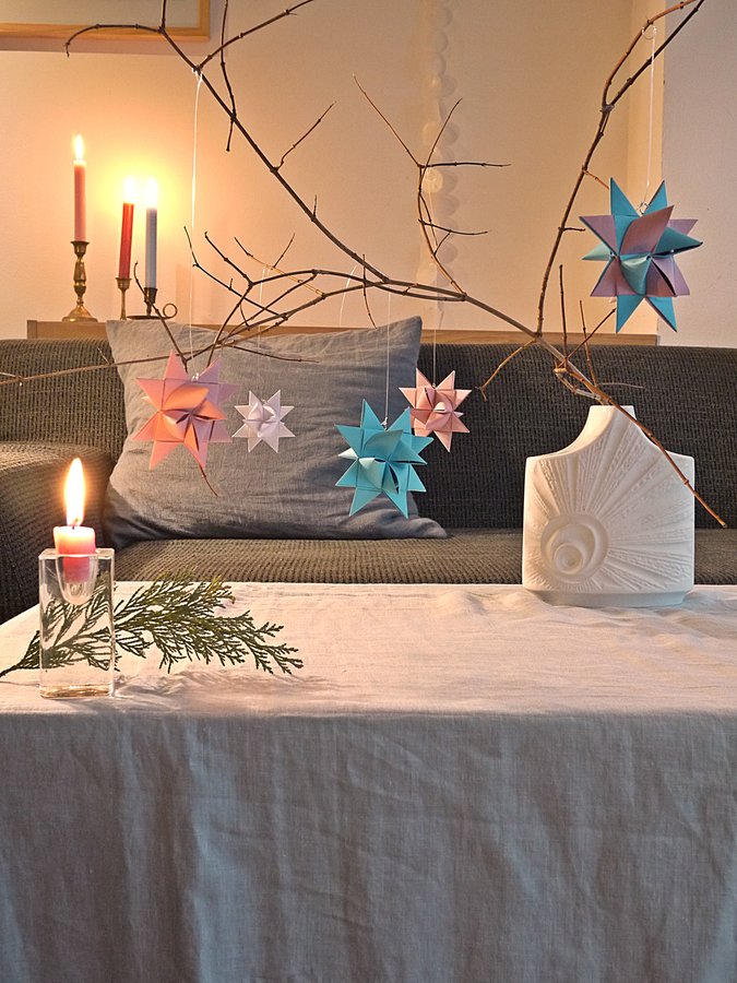 Wohnzimmer, Advent, Rose Quarz Serenity, Leinen, Fröbelsterne, Fröbeln