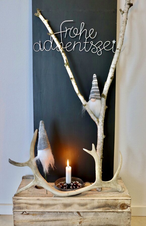 DIY Tafelbrett, Kiste, Wichtel, Kerzenhalter, Rengeweih, Birkenast, Schriftzug, erster advent