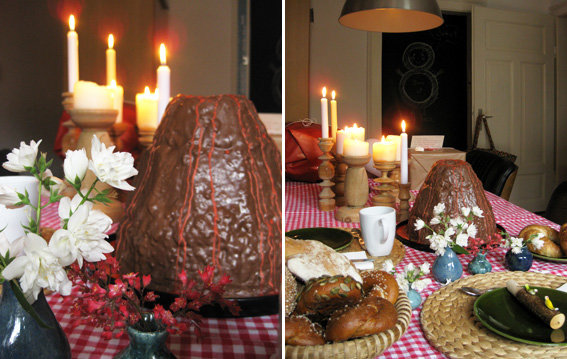 Zum Kindergeburtstag am vergangenen Wochenende mußte ich einen besonderen Kuchenwunsch erfüllen - ein Vulkan mit Lava sollte es sein...