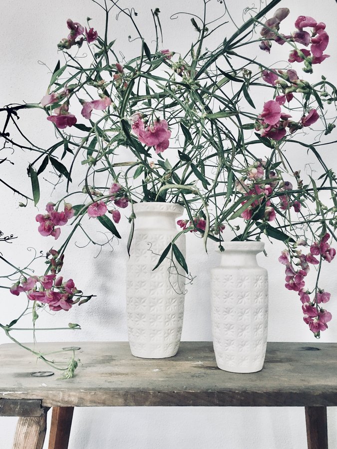 Midcentury, Altholz, Keramik, Vasen, Wicken, Weiss, Pink