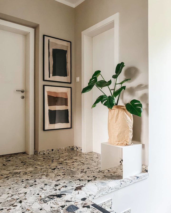Flur, Terrazzo, Zimmerpflanze, Wandfarbe Beige