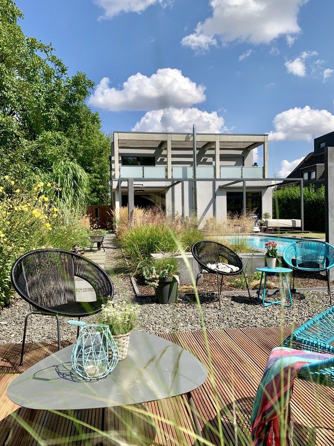 Garten, Stauden, Pool, Haus, Minimalistisch, Terasse, Gräser