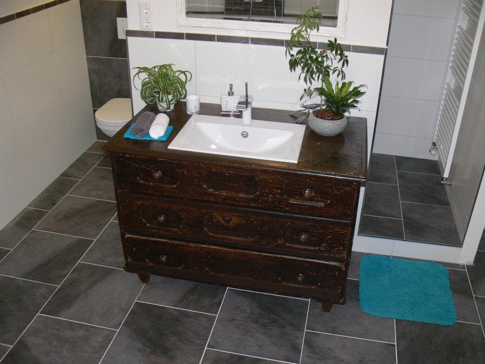 Waschtisch im Bad. Noch immer erfreut er mich jeden Morgen