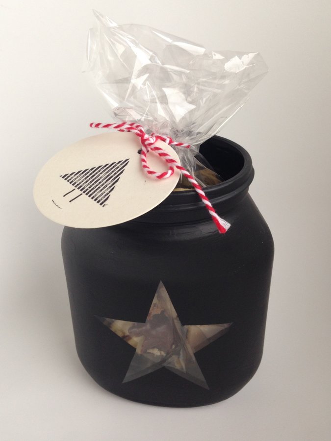 Die Weihnachtsgeschenke für die Familie sind fertig und ich finde sie sind ganz besonders schön geworden. Wir haben alte Gurkengläser (und vereinzelt Nutellagläser *hüstl*)mit Tafelfarbe bemalt. Sie werden mit Teelicht und selbst gebackenen Keksen befüllt verschenkt.