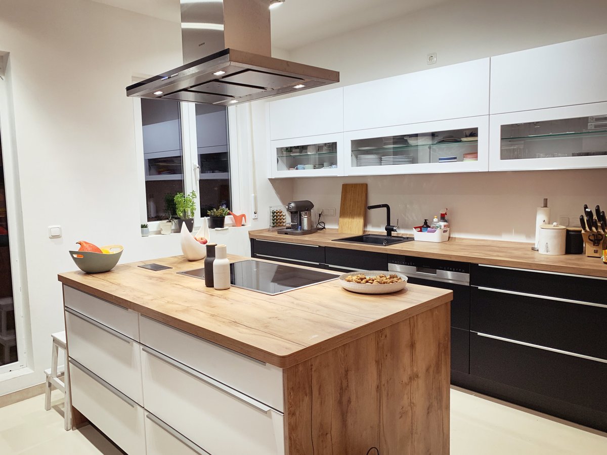 Küchenblock, schwarz weiß, Küchenaccessoires, Kücheninsel, Aufgeräumt