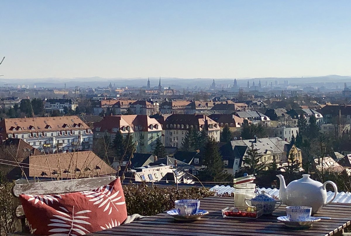 Wenn man so mitten im Februar auf der Sonnenterasse sitzt, Tee trinkt, das letzte Weihnachtsmarzipan wegfuttert und auf das traumhaft schöne Elbtal schauen kann, dann fühlt sich Dresden ein bisschen wie (Elb)Florenz an.