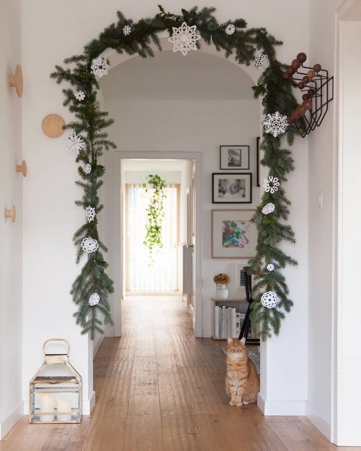 Flur, Eingangsbereich, Weihnachtsdeko, Deko, Holzboden, Diy, Garderobe, Kater