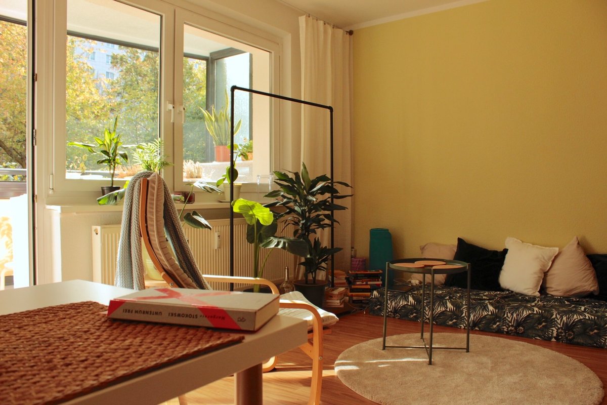 Wohnzimmer, Zimmerpflanzen, Wohnküche, Balkon, Minimalistisch, Sonnenschein