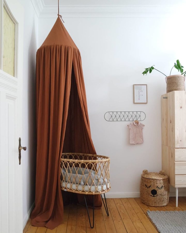 Kinderzimmer, Kinderbett, Baldachin, Orange, Altbau, Korb, Wandgestaltung