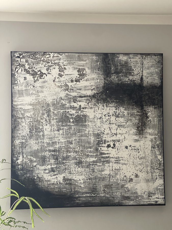 Acrylfarbe, Asche, Wachs, Kreide, Pigmente, Kohle.