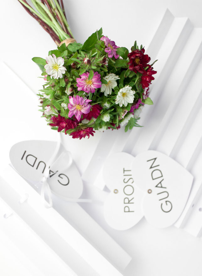 So habe ich es gemacht: Papier falten, lochen, Schleifenband durch die Löcher ziehen und wie Dirndlschürzen um eine Vase binden!