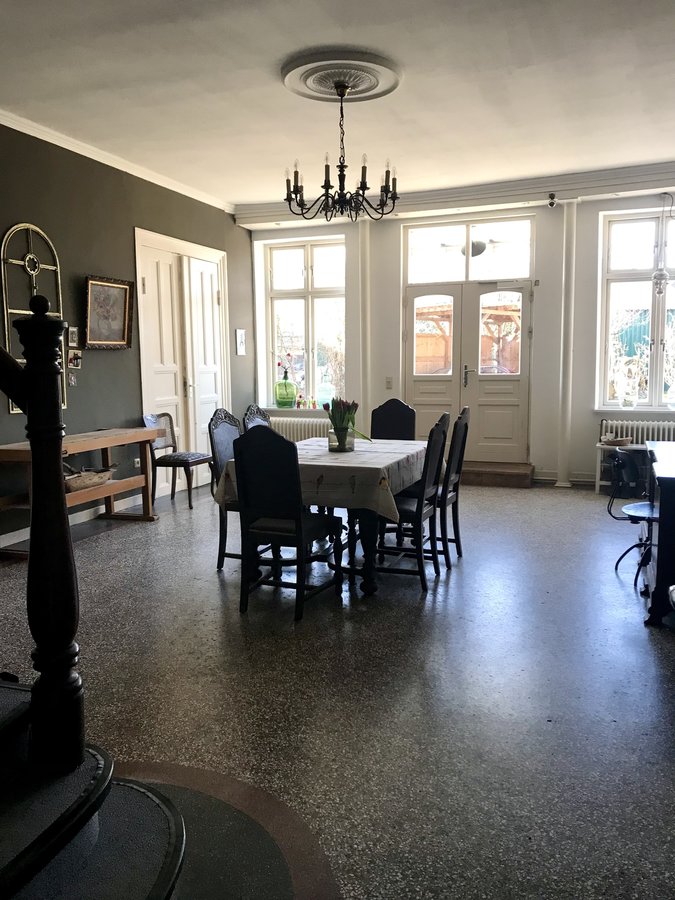 Eingang, Diele, Terrazzo, Treppenaufgang, Flügeltür, Altbauliebe, Stuck, Kronleuchter, Vintage