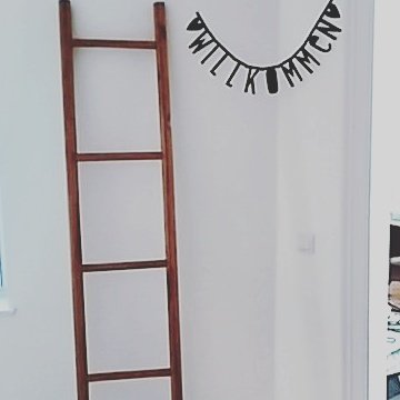 So die Kleiderstange wurde gegen die Leiter getauscht. Jetzt fehlen nur noch die Halterungen, dann können hier die Jacken aufgehangen werden.