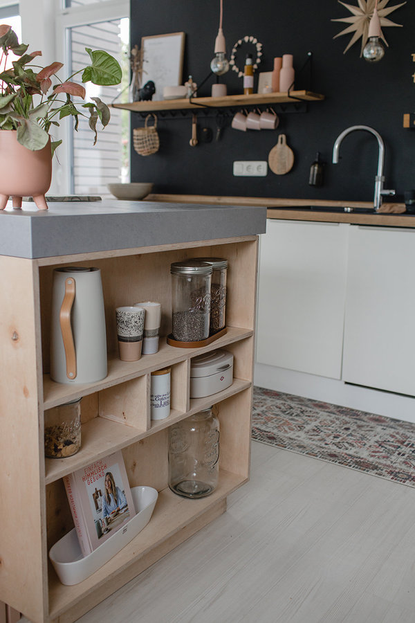 Wir hatten eine Art Tresen - die Arbeitsplatte stand etwas über, da wir das aber überhaupt nicht genutzt haben, ist nun dieses Regal an der Stelle eingezogen.