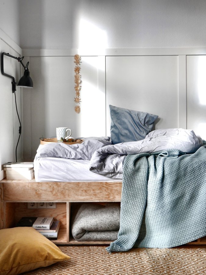 Wir sind echt glücklich mit der Entscheidung das neue Bett aus Sperrholz selber zu bauen.