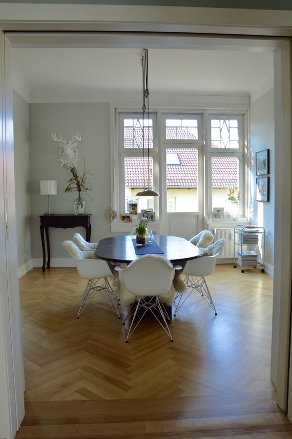 sonniges Esszimmer, Esszimmer, Hängeleuchte, Altbau, modernes Esszimmer