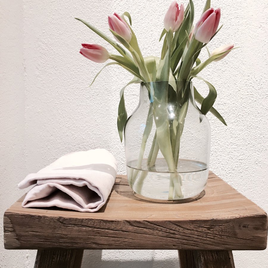 Holzhocker, ulmenholz, alter Holzhocker, Muuto Silent, Rosa Leinen, Flur, Deko, Flurdeko, Sonntagmorgen