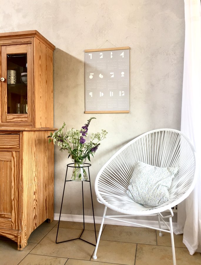 Blumendeko, Wiesenblumen, Schmetterlingsstrauch, Betonwand, Glasvase, Weiß, Grau, Blau, MutigAberSowasVon