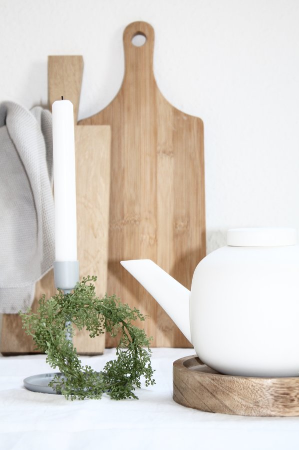 Dekoration, Holzbretter, Tischdekoration, Teekanne, Holz, Kerzenständer, Kerzen