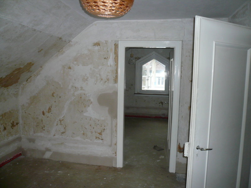 Dies werden die beiden zukünftigen Kinderzimmer, an den Wänden musste viel entfernt werden, danach spachteln etc.