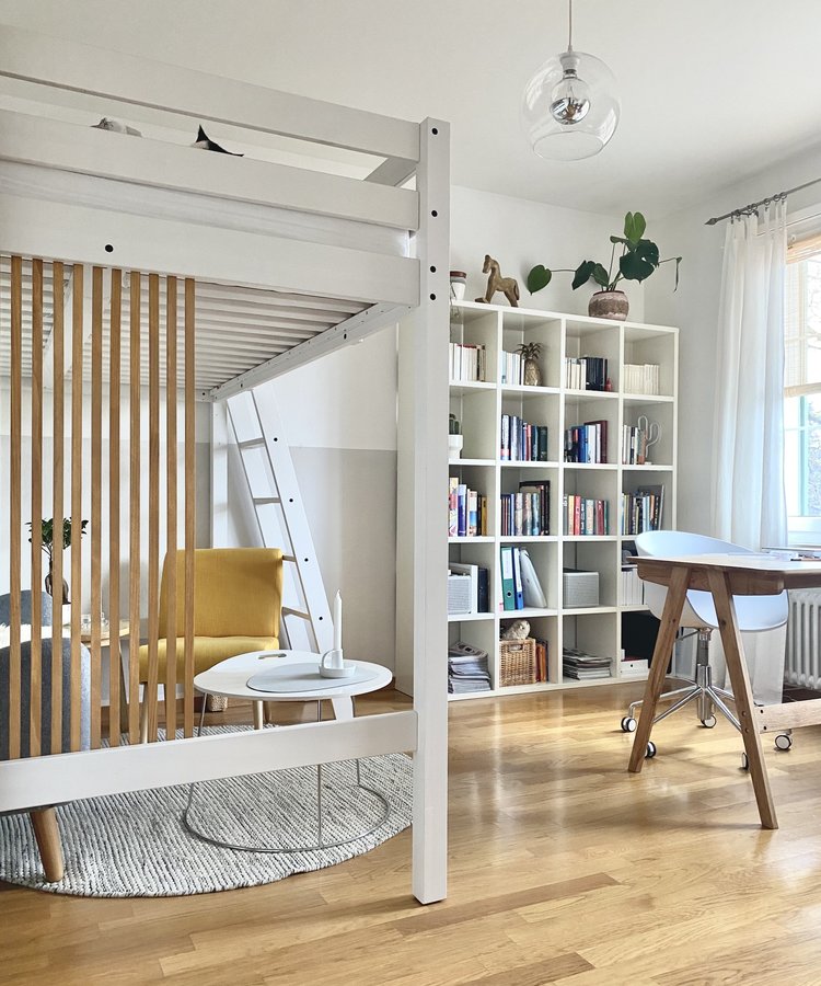 Lamellen, Holzlatten, Diy, Mädchenzimmer, homeoffice, Hochbett, Lounge, Bücherregal, Wandgestaltung, Japandi