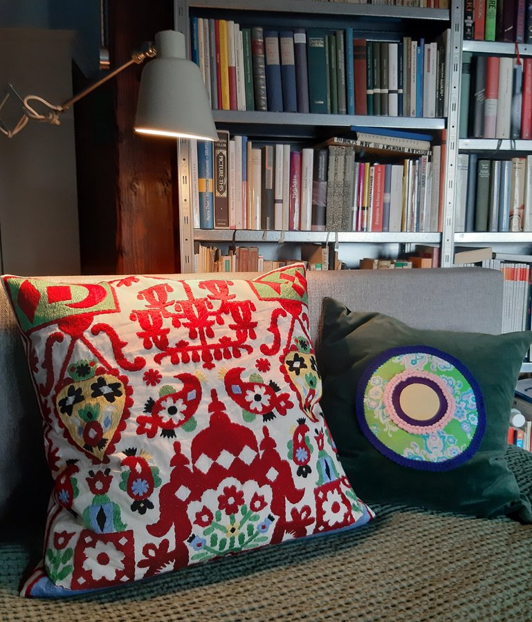 Zwei Kissen, zwei Künstler. An solchen Werken freue ich mich lange.