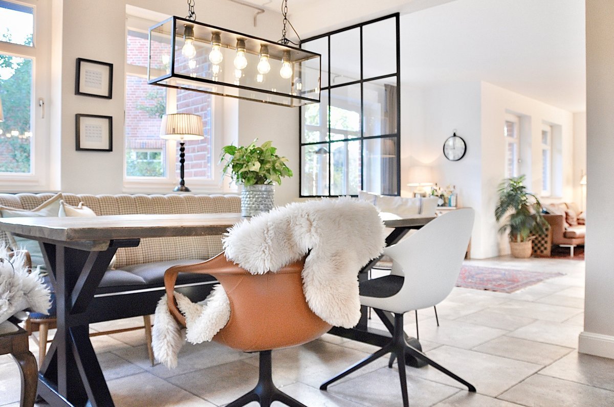 Zwei neue Stühle, und plötzlich passte nichts mehr 😱. Jetzt mussten der Esstisch und die Lampen in den Fenstern schwarz lackiert werden! Ist ja schnell gemacht 😜