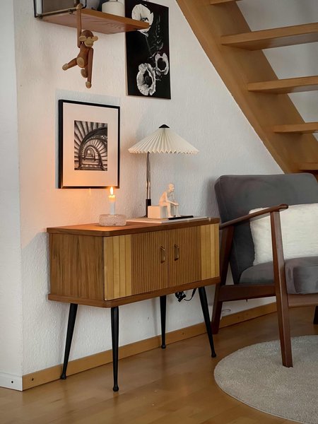 Obgleich es nicht sein Stil ist, hat der Mann von @Herbstzeitlose sie zum 60. Geburtstag mit dieser Mid-Century-Schubladenkommode überrascht. „Übergroßer Liebesbeweis, der mir spätestens jeden Abend, wenn ich im Bett liege, wieder mal klar wird“, sagt Patricia. Das Mid-Century-Sideboard von Behr hat @barbarella_mx vor 14 Jahren auf eBay entdeckt: „Es bietet so viel Stauraum, dass das Wohnzimmer immer aufgeräumt aussieht.“