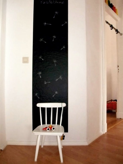 Ebenfalls eine Idee von MiMa9308 ist das partielle Bekleben mit Tafelfolie von einzelnen Elementen eines Möbelstücks, wie z.B. nur das Türchen eines Schränkchens. Der Korpus wurde weiß gestrichten, die Türe mit Tafelfolie beklebt – der so entstandene Kontrast hat neben funktionaler Bedeutung auch eine interessante optische Wirkung.