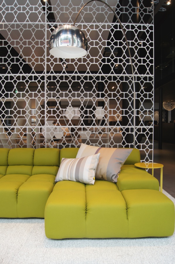 Grünes Sofa und Raumtrenner bei B&B Italia
