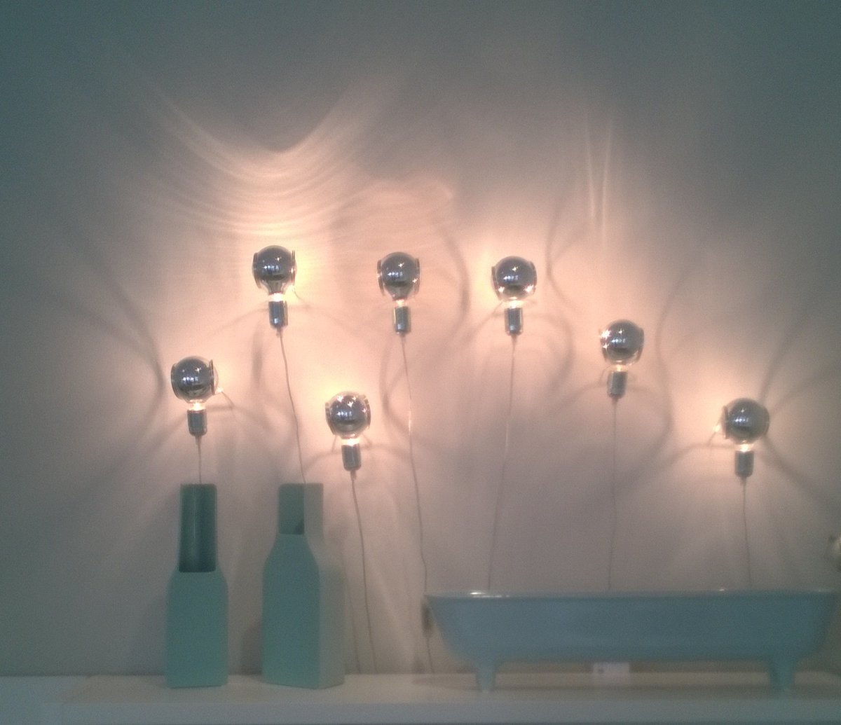 La Plic Wandleuchte und Jo und Longpot, Vase in hellblau
