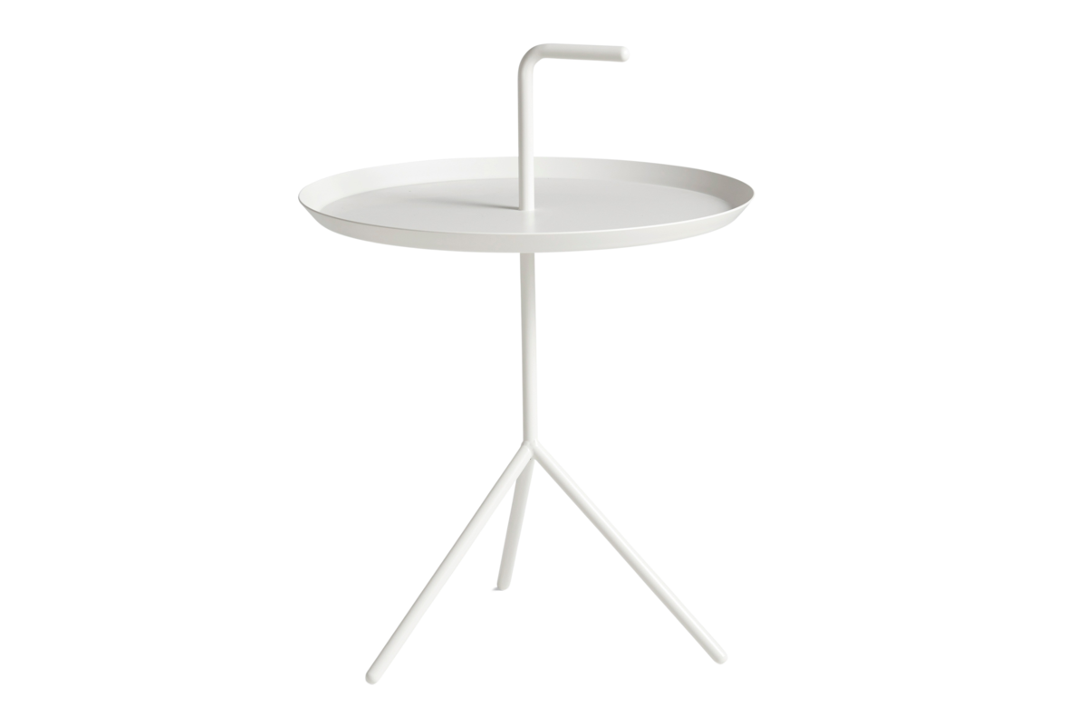 Do not leave me: Thomas Bentzens kompakter Tisch für den dänischen Hersteller HAY ist tragbar und lässt sich flexibel von Ort zu Ort bewegen. Er ist ein Klassiker unter den Beistelltischen und bietet Ihnen Dank seiner cleveren Gestaltung mehr als die meisten gängigen Modelle. Die XL Variante punktet nun mit einer wunderbar großzügigen Stellfläche und mehr Gesamthöhe. Der Tisch lässt sich mit seinem Griff flexibel und leicht durch Haus und Garten tragen und dort abstellen, wo Sie ihn gerade benötigen. Damit zeigt er sich besonders minimalistisch und ermöglicht es Ihnen auf viele kleine Tische an vielen Orten zu verzichten. Seine leichte, tragbare Struktur bekommt durch die drei abgeschrägten Beine Stabilität. Hergestellt wird der Do not leave me aus pulverbeschichtetem Stahl – somit ist er robust und sogar für den Außenbereich geeignet und seine schlichte Silhouette lässt ihn überall passend erscheinen. Durch seine Tragfunktion bietet er eine originelle und clevere Alternative zu herkömmlichen Couch- und Beistelltischen. Sein Einsatz bleibt Ihrer Kreativität überlassen – in XL bietet er ausreichend Platz für Wohnaccessoires und Dekorationselemente, ein zwangloses Kaffeetrinken und für persönliche Alltagsgegenstände. Dank neutraler Farbtöne fällt es leicht, einen Favoriten zu finden und den Tisch harmonisch zu integrieren. Seit 2021 bietet der Hersteller die Serie in schadstoffarmen, wasserbasierten Lacken an!