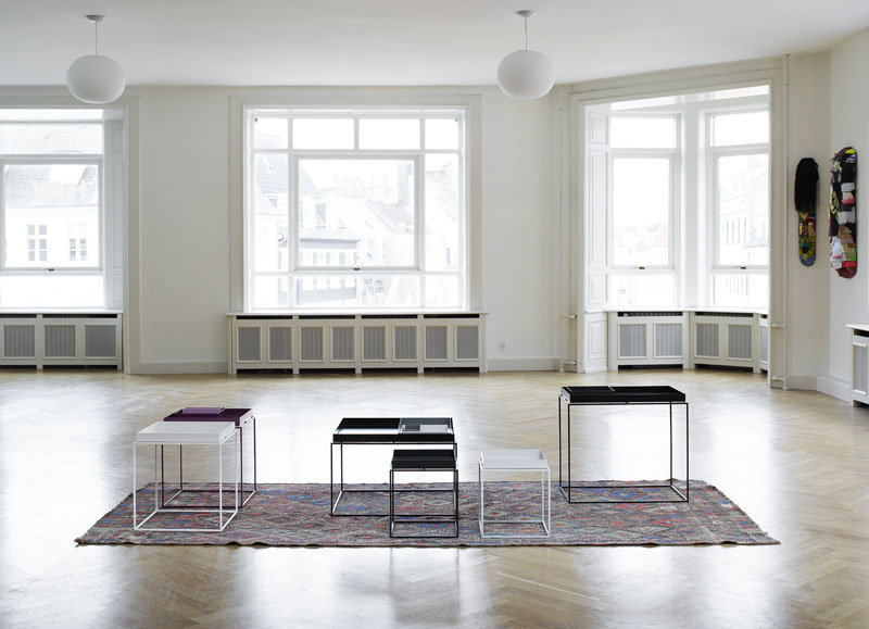 Ein Design – viele Möglichkeiten: Mit seinem multifunktionalen Konzept ist der Tray Table der dänischen Marke HAY ein vielseitiger Begleiter, der gleich in mehreren Räumen zum Einsatz kommen kann. Ob als Couchtisch, Nachttisch oder Beistelltisch – mit seinem stilvoll reduzierten Industrie-Look setzt er an jedem Ort ein geschmackvolles Design-Statement. Tolles Extra: Der kubische Tisch hat eine einzigartige Eigenschaft. Dem filigranen und robusten Gestell aus pulverbeschichtetem Stahl liegt eine abnehmbare Tischplatte auf, die gleichzeitig als massives Tablett genutzt werden kann – diese Funktion gibt dem Tray Table seinen Namen. Das Tablett hat eine praktische quadratische Form, ist wasserunempfindlich und leicht zu reinigen. Sein hoher Rand eignet sich optimal, um zerbrechliche Gegenstände sicher zu transportieren. Den puristischen Tray Tisch von HAY gibt es in verschiedenen Größen, Formaten und zahlreichen Farben, die sich wirkungsvoll zu einem Arrangement aus kleinen Tischgruppen kombinieren lassen. Bei Bedarf lassen sie sich platzsparend ineinanderschieben. Außerdem kann der Tray Table zusätzlich um kleinere Tabletts ergänzt werden, die für Ordnung sorgen und dabei individuelle Looks und Kombinationen aus Farben und Größen ermöglichen.
