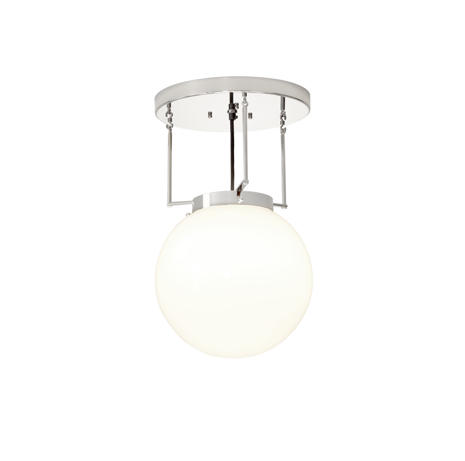 1926 entwarf Marianne Brandt die Deckenleuchte DMB 26 und man fragt sich, ob sie sich vorstellen konnte, dass diese noch heute vom deutschen Hersteller Tecnolumen in Serie produziert und erfolgreich verkauft wird. Gerade in Altbauten oder Räumen mit einer Deckenhöhe von 2,60-3,50 m findet die DMB 26 Deckenleuchte ihren optimalen Platz. In vielen denkmalgeschützten Gebäuden wird diese Leuchte gerne eingesetzt, da sie sich dort nahtlos in das Ganze einzufügen vermag. Empfohlen werden zur Beleuchtung matte bzw. opalüberfangene Leuchtmittel, damit die ganze Strahlkraft und Schattenlosigkeit des hochwertigen Opalglases zur Geltung kommt. Erhältlich ist die DMB 26 in vier verschiedenen Größen und in den Oberflächen vernickelt und Messing poliert und zaponiert. Um das Original von Kopien unterscheiden zu können, nummeriert Tecnolumen® die Leuchten fortlaufend und versieht sie mit dem Bauhaus- und Tecnolumen®-Logo.
