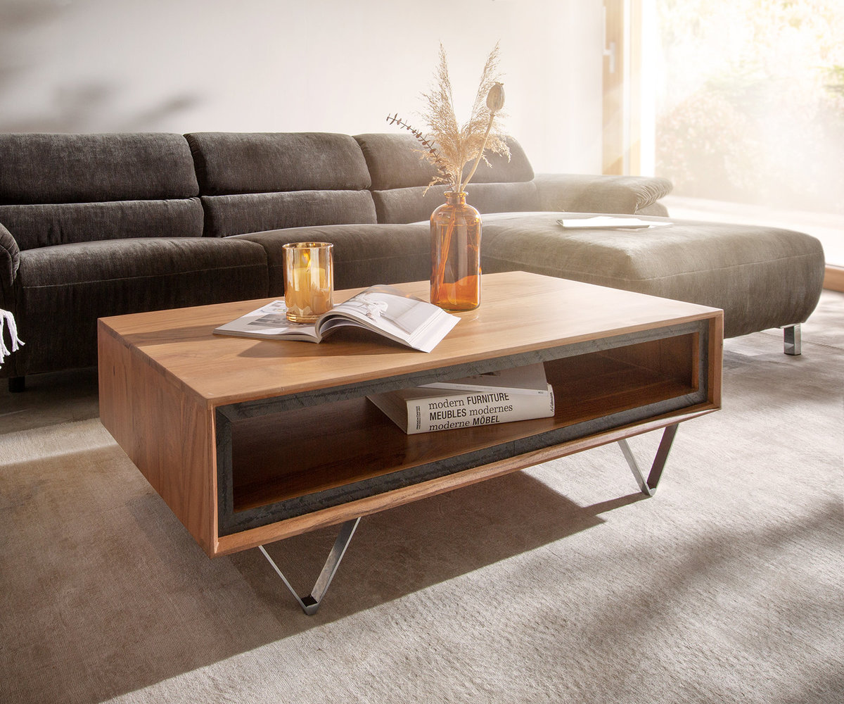 DELIFE Couchtisch Stonegrace 115x60 cm Akazie Natur 1 Fach Steinfurnier, Couchtische