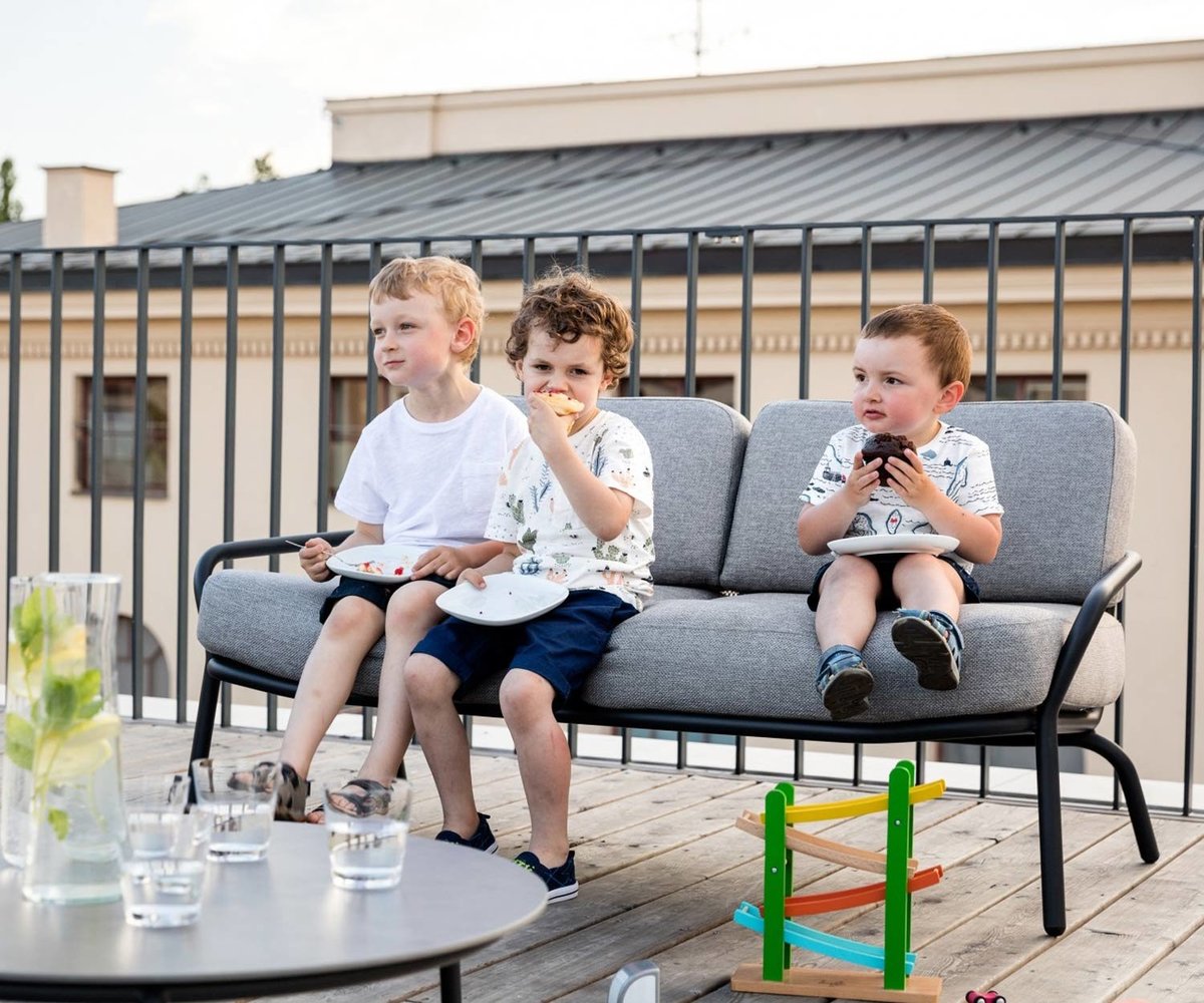 Das Gestell des Todus Starling Design Relaxsofas besteht aus pulverbeschichtetem Edelstahl. Beim verwendeten Stoffbezug handelt es sich um Crevin Vita, der speziell auf den Außenbereich zugeschnitten ist. Das verwendete Stahlgestell zeichnet sich bei diesem Design Gartensofa durch hohe Festigkeit und Widerstandsfähigkeit aus, die ihm eine lange Lebensdauer verleiht. Durch die schräg nach unten hinten verlaufende Sitzlehne ist das Sofa sehr komfortabel. Der Stoffbezug ist sowohl für Indoor als auch Outdoor geeignet. Diese Sofas müssen deshalb nicht im Winter eingelagert werden. Der Bezug ist wasserdurchlässig und nach einiger Zeit in der Sonne schnell wieder trocken. Außerdem ist er waschbar, UV-beständig, schimmelbeständig und pflegeleicht.